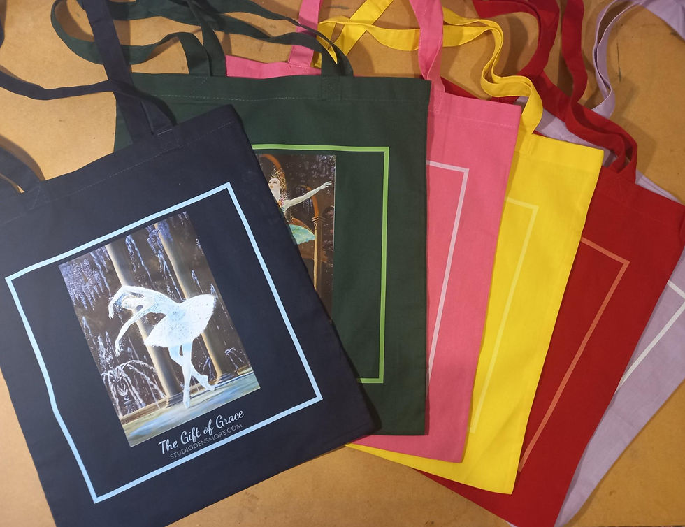 Cotton Tote Bags for shopping, carrying and gifting. Featuring prints of the ballerinas from my series, "Gifts of Virtue."